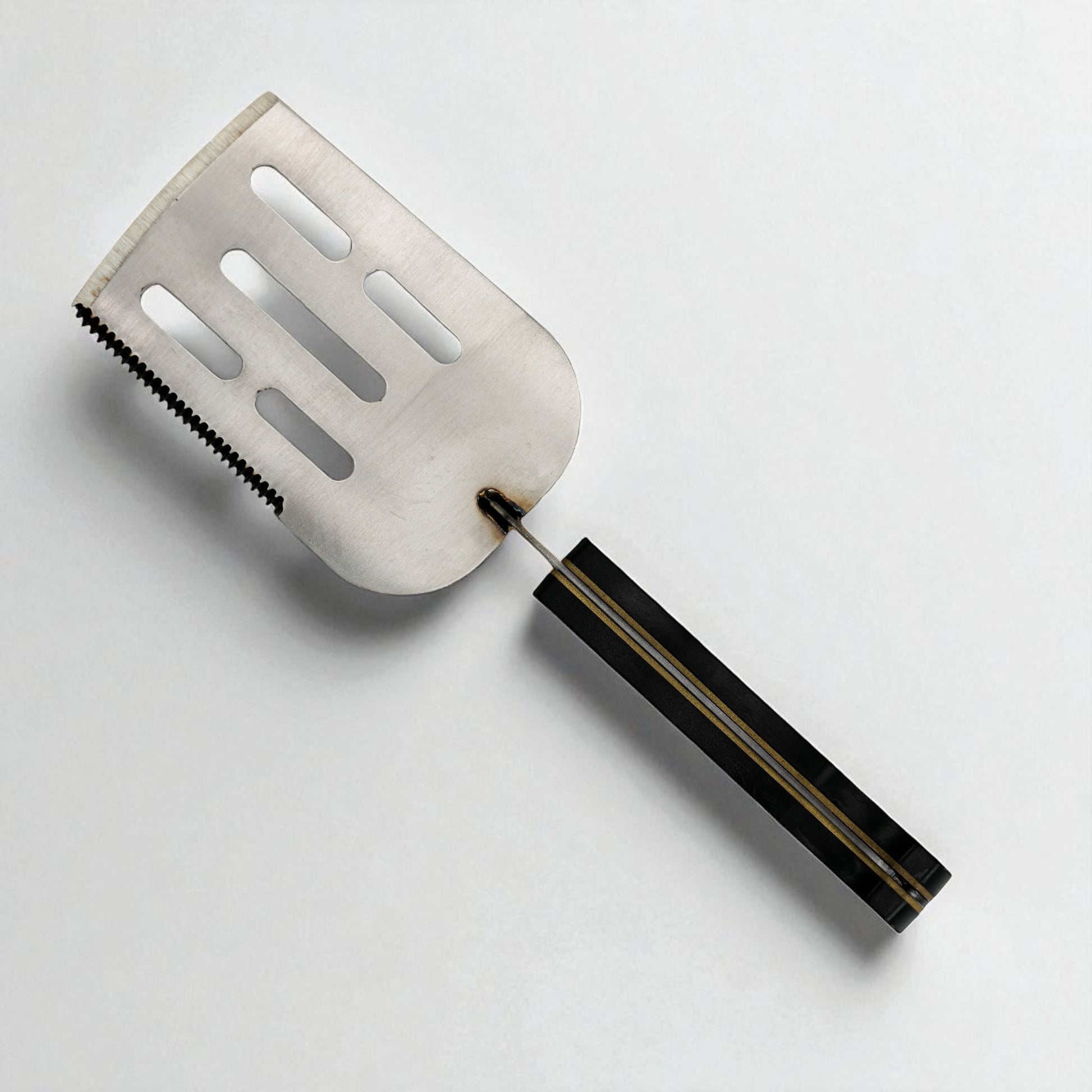 Tired of spatulas that bend like a soda can? This heavy-duty stainless steel spatula is made to flip with confidence, not flop! With a wide, beveled edge and solid grip, it handles burgers, steaks, and veggies like a boss. No wobble, no drama.