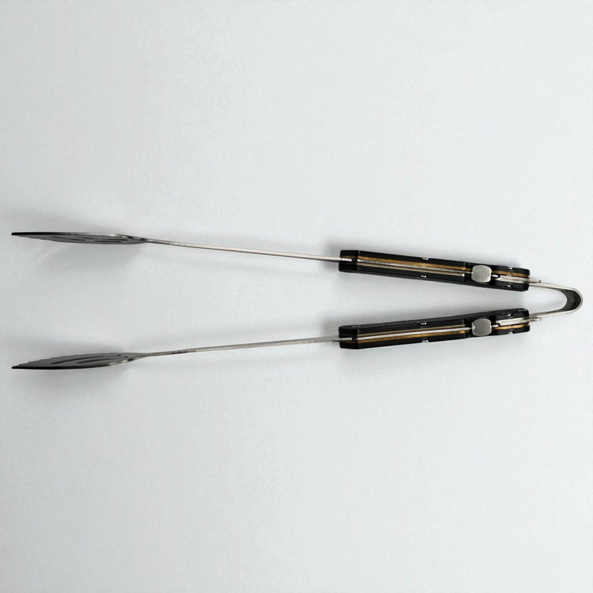 Elevate your grilling experience with stylish brass inlay detailing, adding a touch of elegance and sophistication to this high-end utensil.