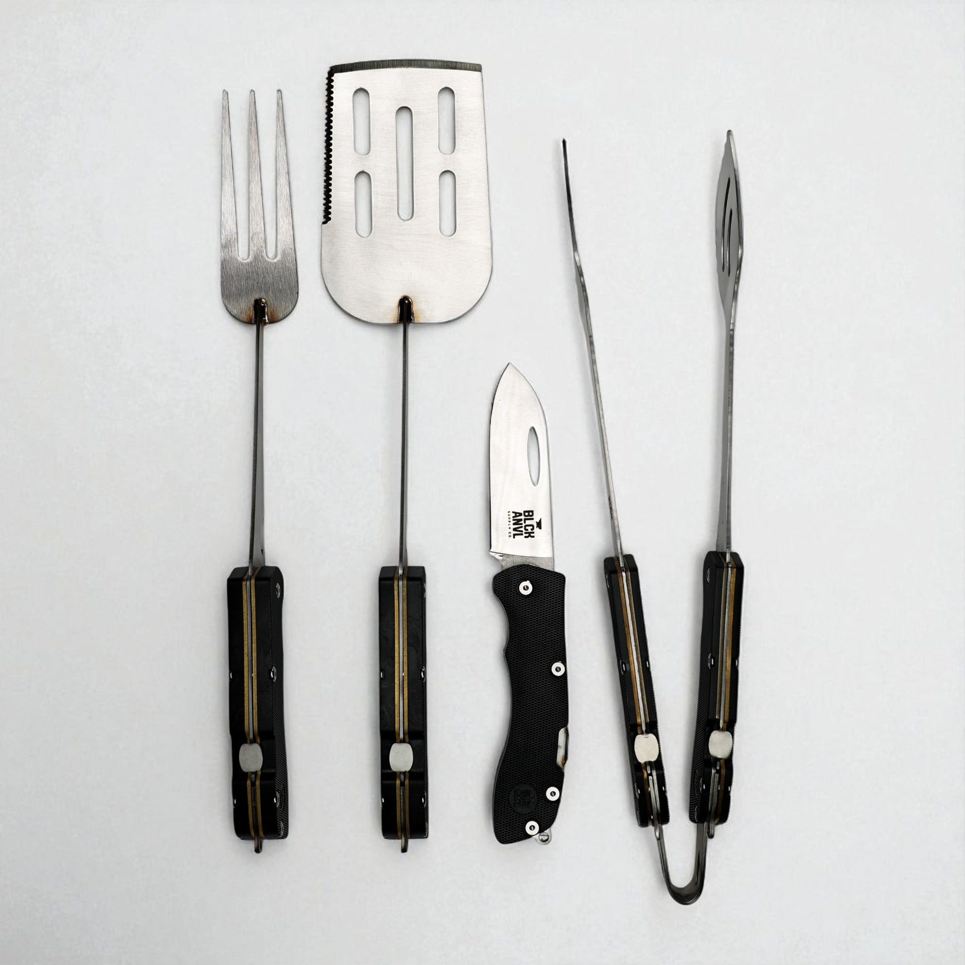 Elevate your grilling experience with stylish brass inlay detailing, adding a touch of elegance and sophistication to this high-end utensil.